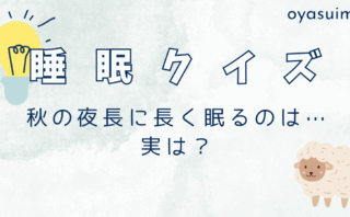 睡眠クイズ 秋の夜長に長く眠るのは…実は?【睡眠クイズ】 ※この記事は一部prを含みます。秋の夜長に長く眠るのは…実は?①睡眠の質が上がる②睡眠負債を返済している③体内時計が乱れる正解は③体内時計が乱れるです。秋の夜長、つい長めに眠ってしまう…その気持ち、よくわかります。でも実は、寝すぎることで「... 2025.09.27 睡眠クイズ
