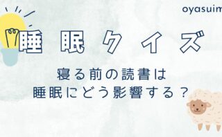 睡眠クイズ <読書の秋>寝る前の読書は睡眠にどう影響する?【睡眠クイズ】 ※この記事は一部prを含みます。寝る前の読書は睡眠にどう影響する? ①入眠がスムーズになる②寝付きが悪くなる③影響はほとんどない正解は①入眠がスムーズになるです。寝る前の読書にはリラックス効果があり、自然な眠気を誘いやすくなるとされています... 2025.09.21 睡眠クイズ