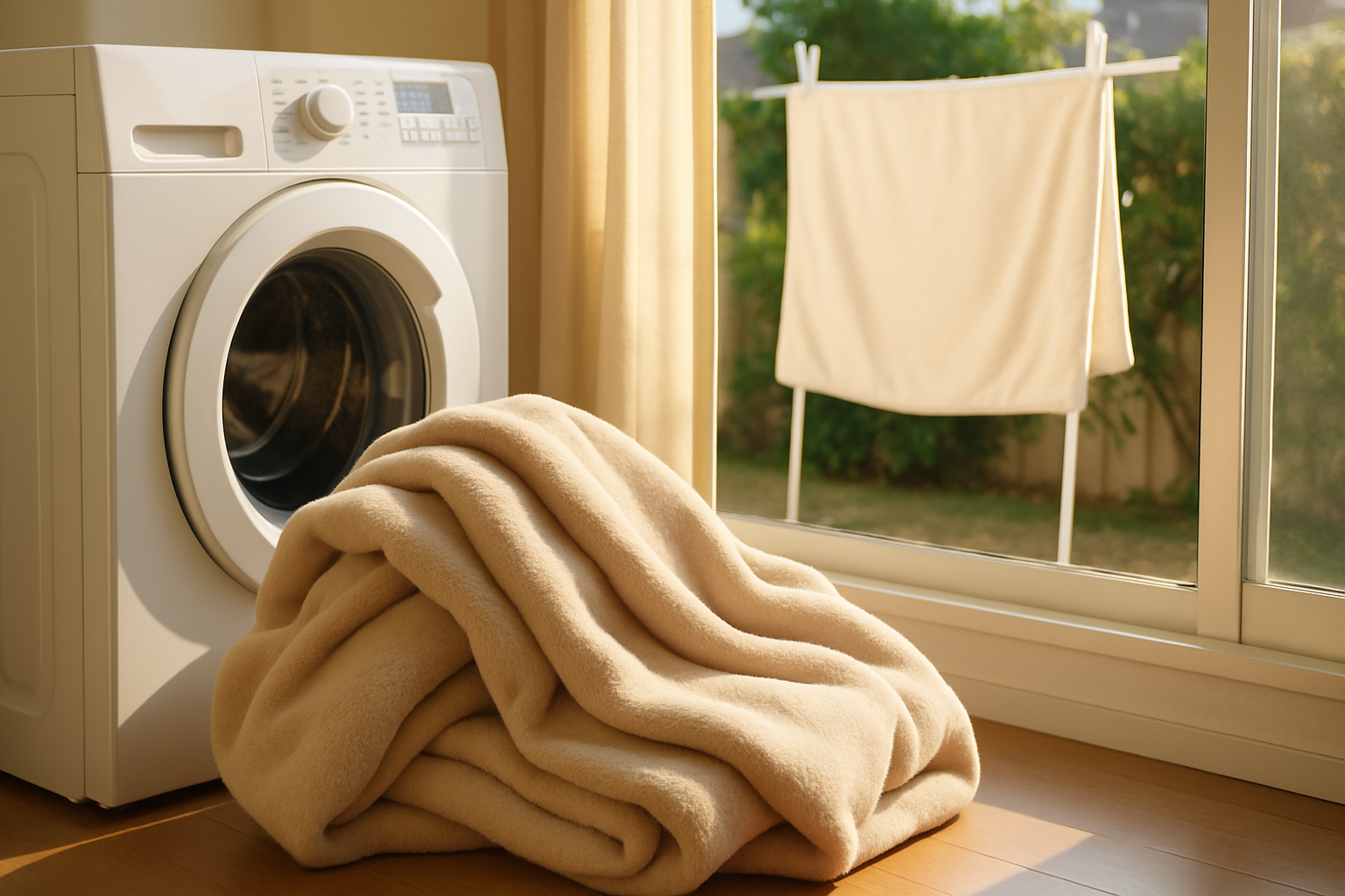 乾きにくい毛布は生乾き臭の原因になるため、コインランドリーの大型乾燥機や布団乾燥機の活用も効果的です。洗濯表示を確認し、自宅で洗える素材かをチェックしましょう。洗濯ネットを使い、やさしいコースで洗うと毛布の風合いを長持ちさせられます。