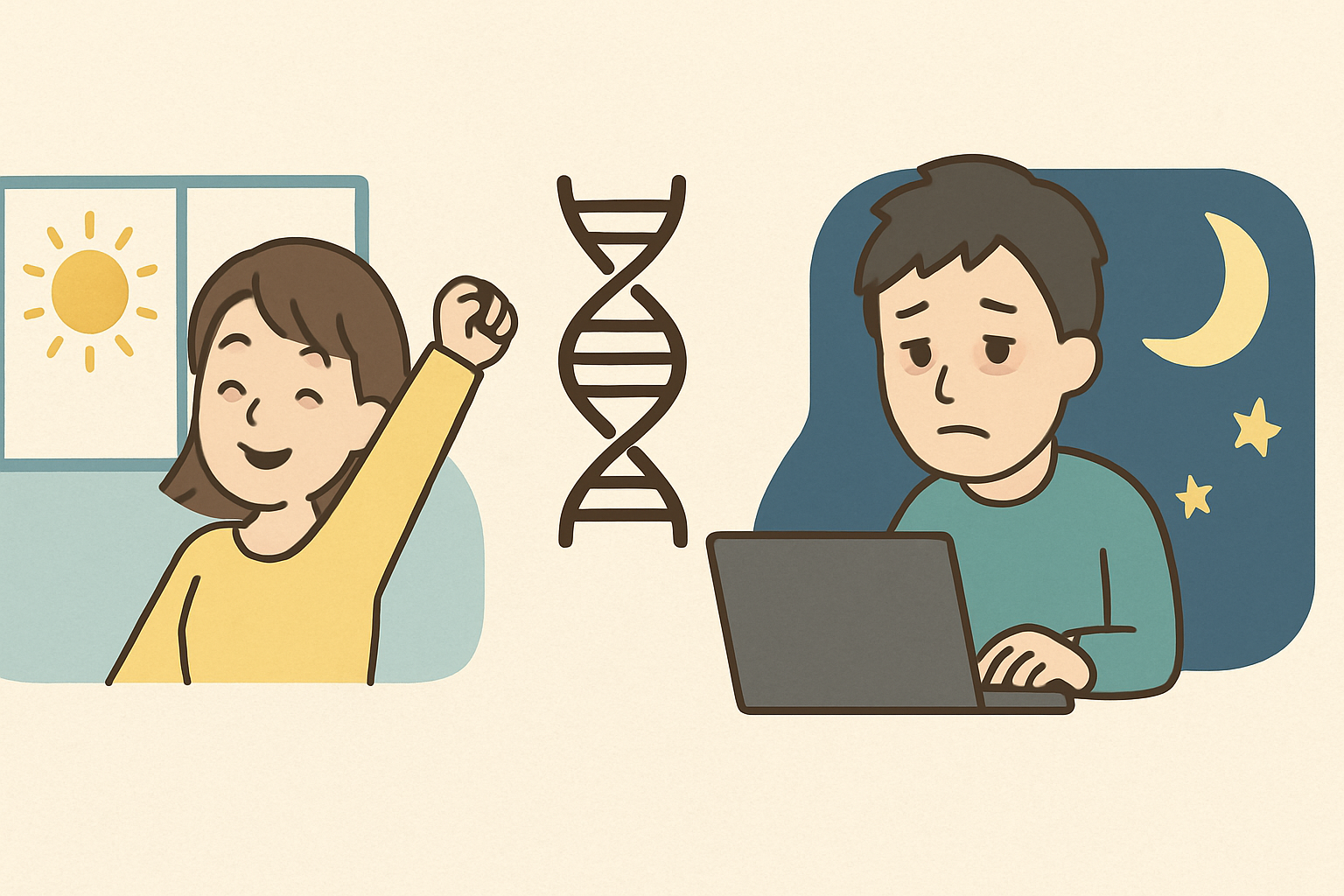 「朝型か夜型かは遺伝で決まる」と聞いたことがある方も多いのではないでしょうか。実際に、朝型・夜型の傾向には遺伝的要素が影響しています。私たちの体内時計(サーカディアンリズム)は「クロノタイプ」と呼ばれ、これに関与する遺伝子がいくつか知られています。