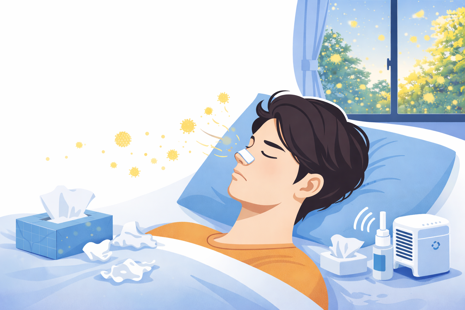 花粉症の鼻づまりは、寝るときの姿勢や環境によってつらさが大きく変わります。寝る前の花粉対策や鼻ケア、寝室環境の見直しなどを行うことで、夜の呼吸が楽になることがあります。