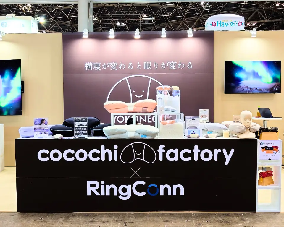 2025年9月3日「睡眠の日」を皮切りに開催された秋のギフトショーにて、富士ベッド工業の「cocochi factory」ブースには多くの来場者が足を運び、実際に商品を手に取り、触れて体験ができました。特に横寝専用まくら「YOKONEGU」シリーズを中心に、睡眠の質を見直す新ラインナップも披露し、好評を得ました。