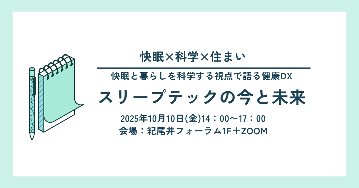 睡眠は人の健康・パフォーマンスに密接に影響します。近年では「スリープテック(睡眠テクノロジー)」が、ヘルスケアDXや健康経営と結びつきながら注目を集めています。本セミナーでは、寝具・住宅・環境設計などの観点から「眠り × 科学 × 感性」について、専門家が最新動向と実践のヒントを語ります。企業・研究・住宅業界など幅広い領域で活用できる知見を得られる機会です。