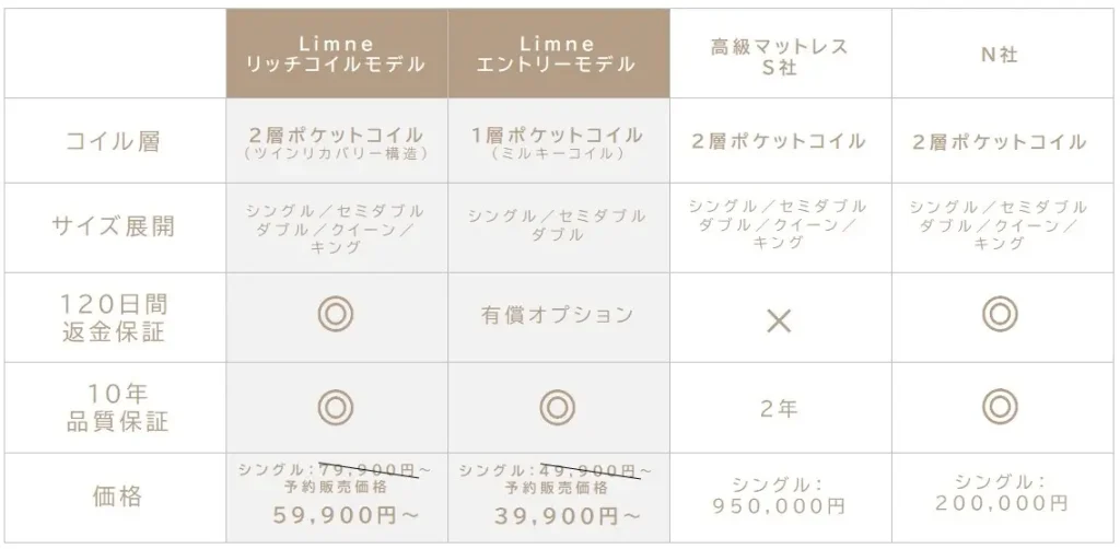- エントリーモデル:https://limne.jp/products/mattress-entry