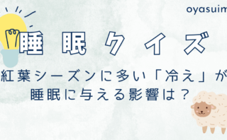 睡眠クイズ 紅葉シーズンに多い「冷え」が睡眠に与える影響は?【睡眠クイズ】 ※この記事は一部prを含みます。紅葉シーズンに多い「冷え」が睡眠に与える影響は?①寝付きが悪くなる②眠りが深くなる③夢を見やすくなる正解は①寝付きが悪くなるです。紅葉が見頃になるころ、朝晩の冷え込みが一気に強まりますよね。でも実はこの「冷え... 2025.09.27 睡眠クイズ