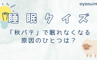 睡眠クイズ 「秋バテ」で眠れなくなる原因のひとつは?【睡眠クイズ】 ※この記事は一部prを含みます。「秋バテ」で眠れなくなる原因のひとつは?①昼夜の寒暖差②紫外線不足③空気の乾燥正解は①昼夜の寒暖差です。秋は気温差のジェットコースター。知らないうちに自律神経が乱れて、夜なかなか眠れなくなることも。夏の疲れが... 2025.09.27 睡眠クイズ